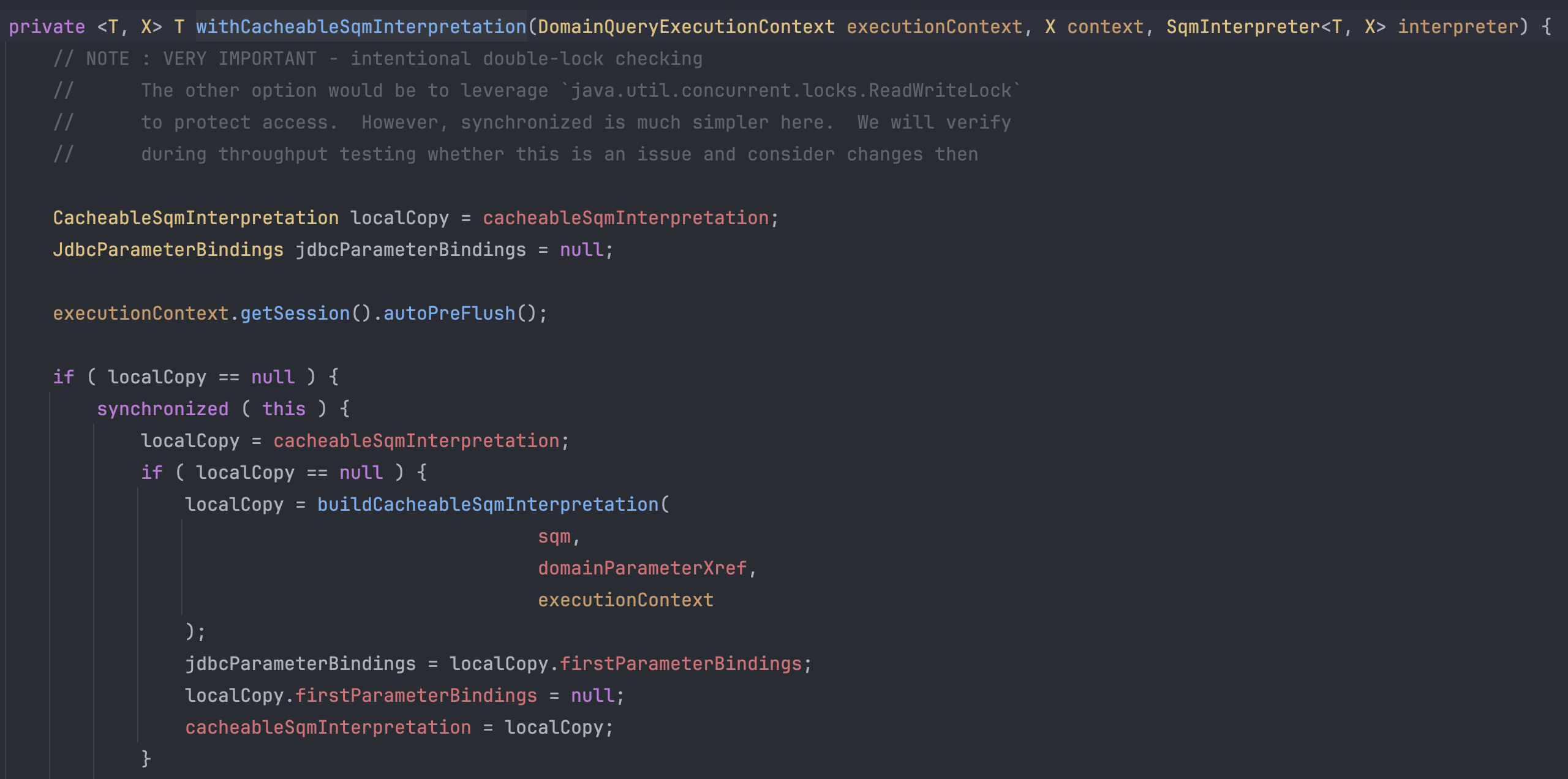 과정을 쭉 따라가다보면 CacheableSqmInterpretation 객체를 만드는 메서드를 만나게 된다.