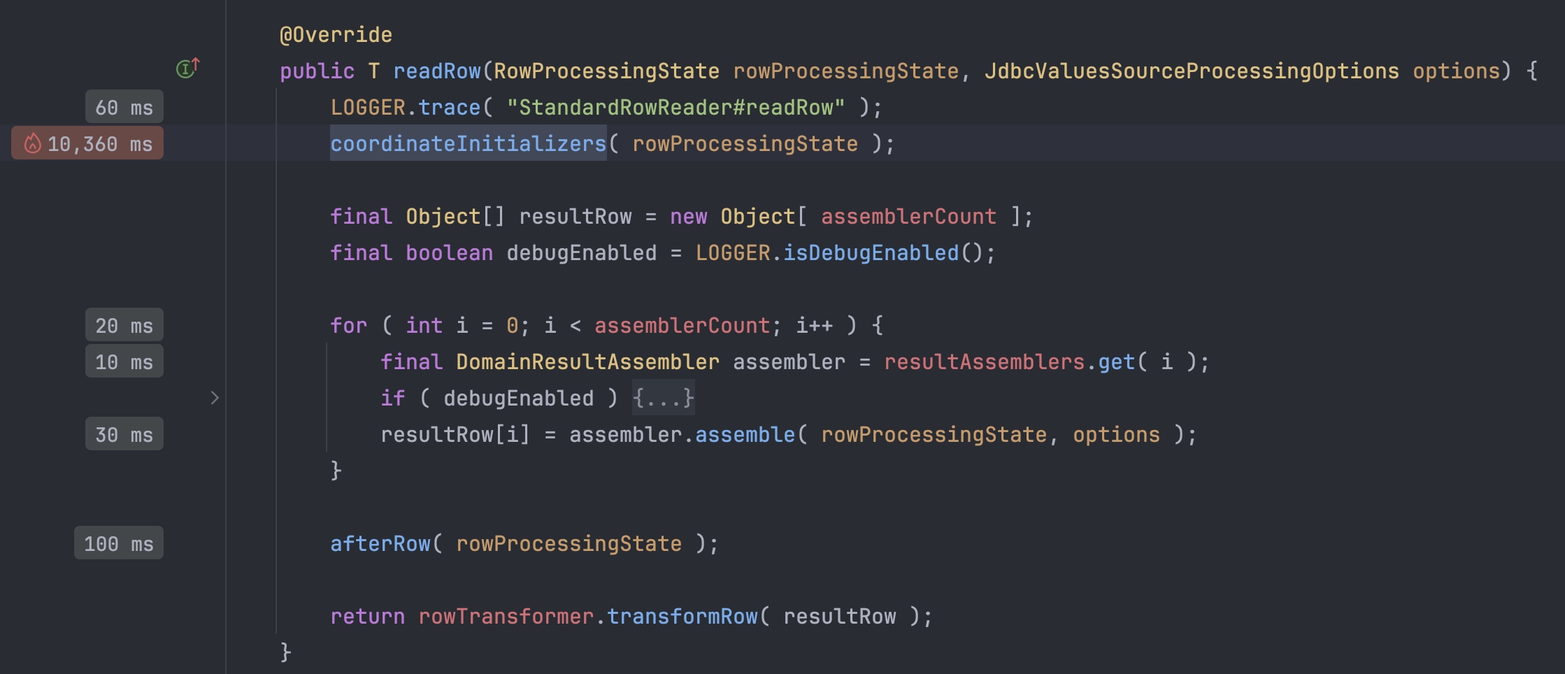 readRow 메서드 초기에 coordinateInitializers가 호출되는데 사실 매핑은 여기서 끝난다.