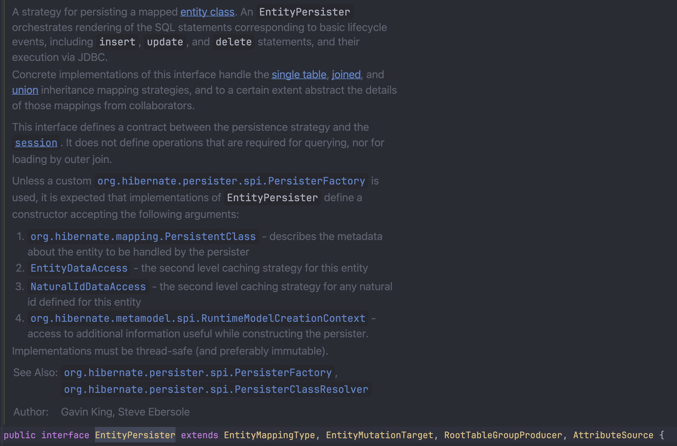 그런 과정이 불필요했던 것이다. 그런데 EntityPersister 그 자체로 사용하지는 않고 특정 형태로 가공해서 사용한다.