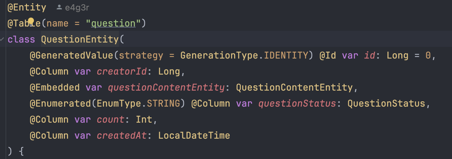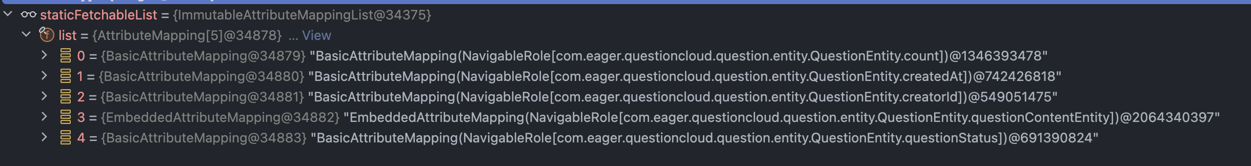 디버깅 과정에서 조회하고자 하는 QuestionEntity는 내부에 Embedded 필드가 있기 때문이다.