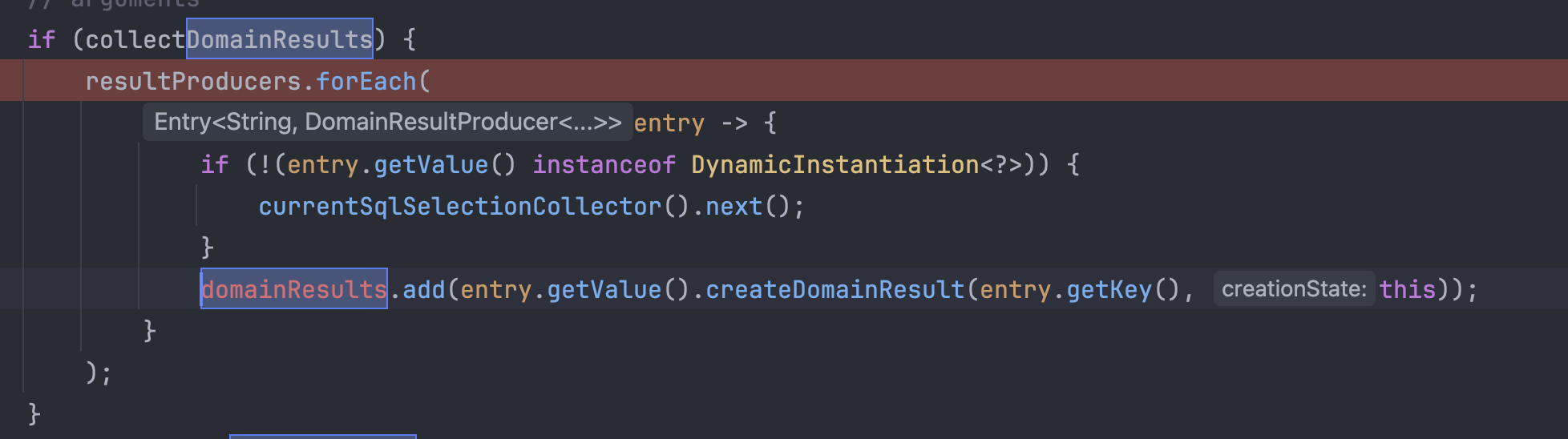 그리고 순회하고 있는 필드에 대한 domainResult라는 것을 생성하고 리스트에 추가하는 부분을 볼 수 있었다.