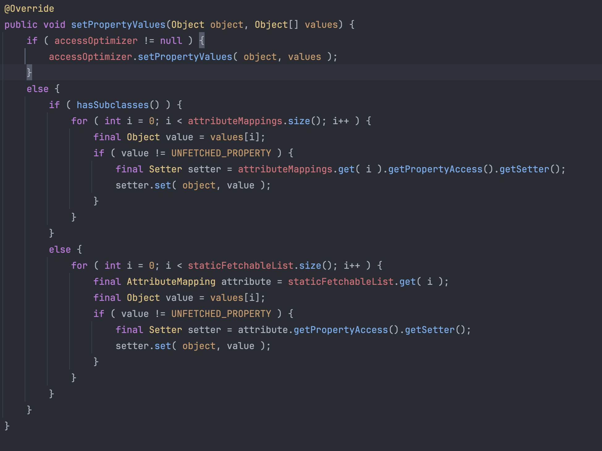 위에서 EntityPersister에 있는 매핑 정보를 그대로 사용하는 것이 아니라, 특정한 형태로 가공해서 사용한다고 했다.