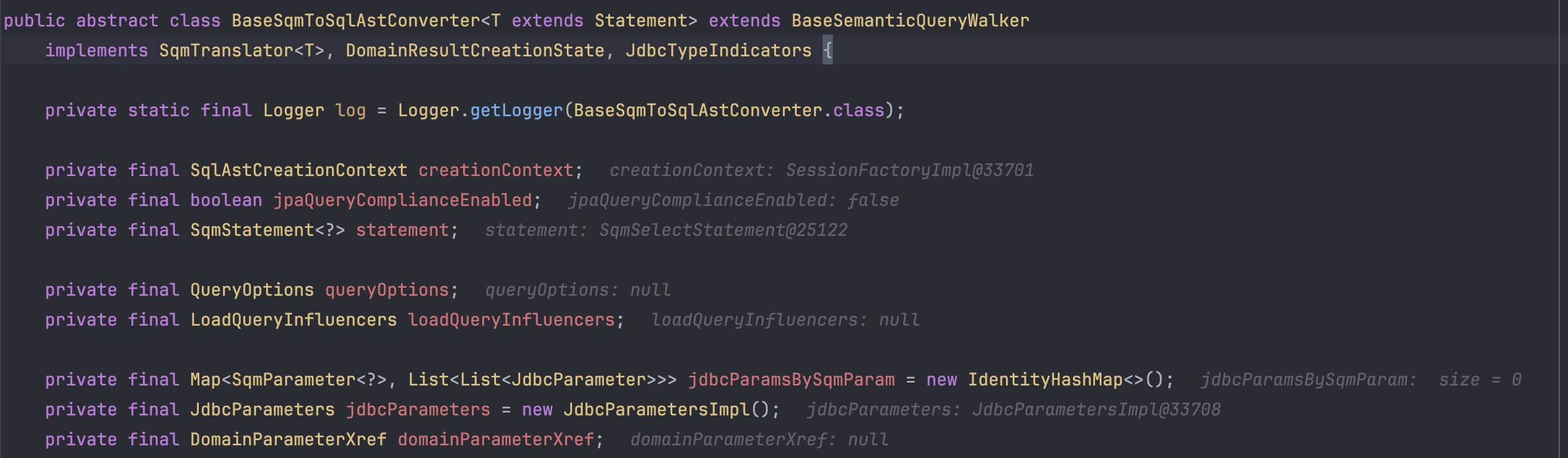 translate를 호출하게 되면 내부적으로 BaseSqmToSqlAstConverter를 사용하게 되는데 SQM 정보를 이용해서